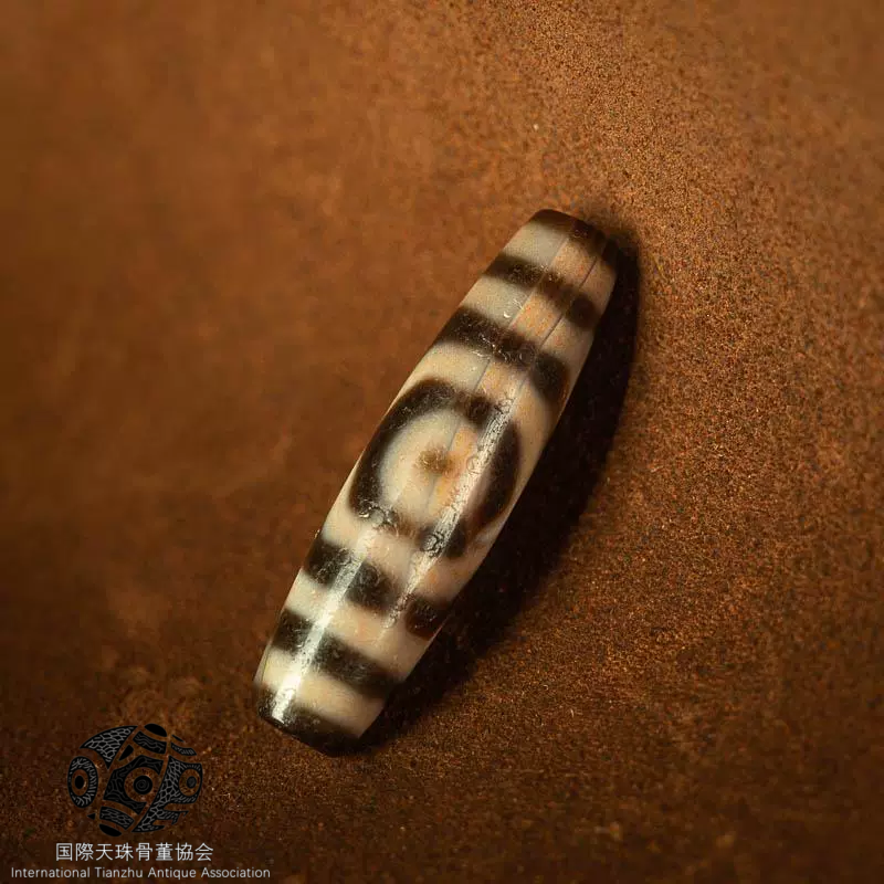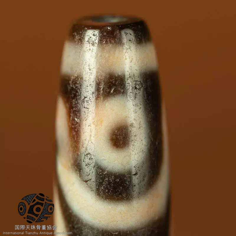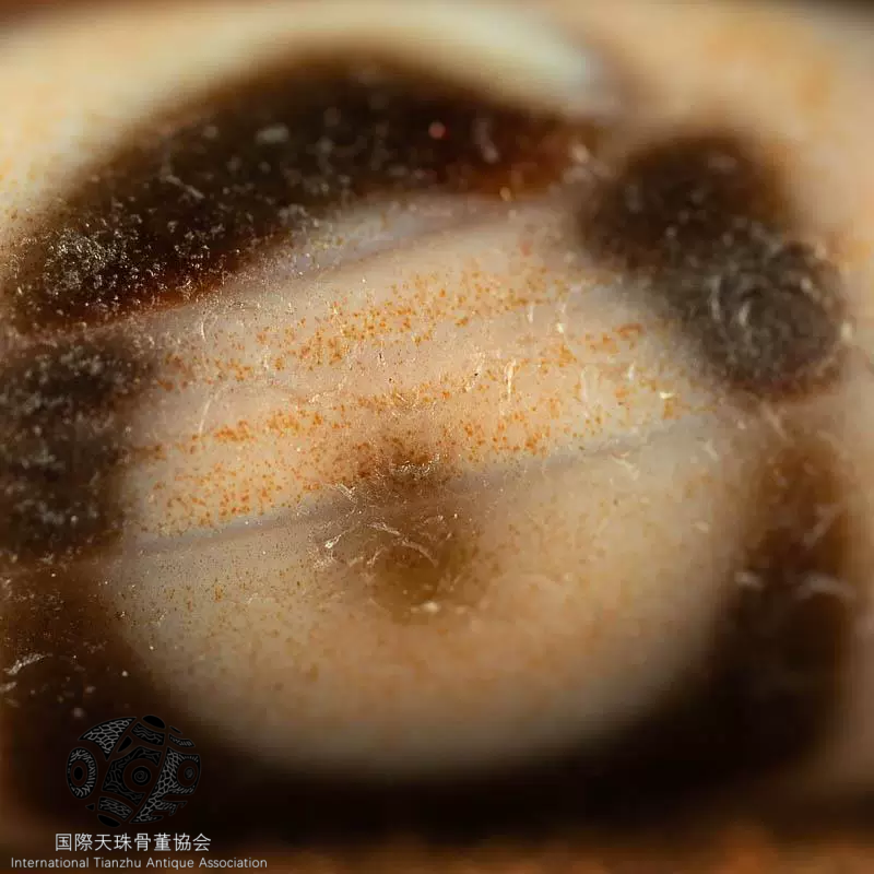 外観から見ると。 その表面には星のような絶景の朱砂点が広がっている。 これらの朱砂点は天珠に独特の美しさを加えただけでなく。 さらに歳月の沈殿と神秘的な力の象徴とされている。 3つの目のトーテムははっきりしていて整っている。 天地の霊気が凝縮されているようだ。