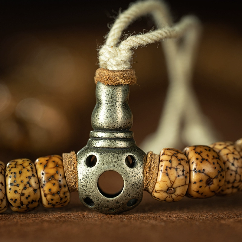 - 108 ペレットじゅんしき: ビーズなし。 仏頭または装飾。 チベット式綿糸のみで製造。 清代のチベット伝来の真珠に厳格に従う 「簡潔に心を修める」 の伝統。 主珠は真円のビーズ。 直径が約 [X] ミリメートル。 大きさがそろっている。 穴は手作業で磨かれているラッパ状。 内壁に残る竹製ドリルの螺旋紋。 摩擦により孔が温潤な弧面光沢を形成する。